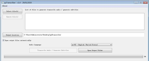 pyTranscriber是一款免费的影片语音转字幕工具,支持Windows、Mac、Linux平台,不仅完全免费,语音辨识准确度也不错,速度处理也特别快,支持多种字幕语言!  功能介绍 语音识别功能 内置翻译器 自动显示文字内容 使用方法 操作介面,目前虽然还不支援中文,但不用太担心看不懂的问题,操作很简单。第一部按左上角的 Selec毁形灭性拼音:huǐ xíng miè xìng释义:损坏形体,消灭本性。出处:无示例:无t file(s),选择你要转成字幕的影片: 支援批次处理,也就是你可以一次选择多部影片,有选错的部分,就点一下该档案,然后按左侧 Remove file(s) 移除: 第二步为打开右下角的转换语言选单,滑到最下方可找到繁体中文(zh-Tw C Chinese Traditional),中文部分还有中国简体中文、香港简体中文与香港繁体中文: 确认 Output Location 转成字幕后储存的位置是不是你想要,预设为桌面的 pyTranscriber 资料夹。都好了之后,就按下方 Transcribe Audio / Generate Subtitles 开始转换: 总共有两个步骤,第一是会把所有影片转成 FLAC 声音档: 然后再进行语音辨识转字幕。虽然说是两步,但处理速度非常快,这两部影片总时间大约 50 分钟,只花不到 4 分钟就完成了: 不过不知道是目前刚好有问题,还是怎么了,我选择的是繁体中文,辨识出来却是简体中文,这部分读者们再自行试试,如果一样,可以晚一点或明天在试试,我看其他人有正确辨识出繁体中文: 时间部分都非常准确,字幕当然多少还是有错,但不会说太离谱,后续依旧要自行检查与修改。 相较于全部自己来,光是对时间这点,这套就能省下超多时间,即便加上检查与修改时间,也提升至少 50% 的效率。 如果有中英混杂的情况,它也会辨识出来,这点相当不错。 不忍登高临远,望故乡渺邈,归思难收。叹年来踪迹,何事苦淹留?想佳人妆楼凝望,误几回天际识归舟?争知我、倚阑干处,正恁凝愁?自小阙内训,事姑贻我忧。pyTranscriber(影片语音转字幕工具),pyTranscriber(影片语音转字幕工具)下载,媒体管理,影音工具38、In peace prepare for war. |