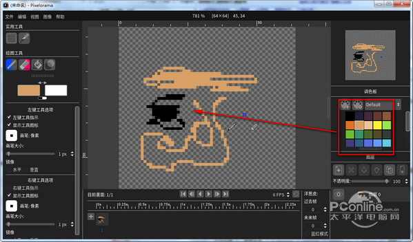 Pixelorama是图像处理频道下深受用户的软件,太平洋下载中心提供Pixelorama官方下载。 Pixelorama官方版是一款专业高效且功能实用性强的像素画绘制软件,Pixelorama软件能够充分发挥自己的绘画才能,利用各式色彩画出属于自己的像素画,Pixelorama最新版同时导出的像素画还能用作游戏、鼠标进行使用,是一款非常好用的像素画软件。  Pixelorama -在 6 种工具之间进行选择-铅笔,橡皮,填充桶,变亮/变暗,颜色选择器和矩形选择-并将它们分别映射到鼠标左键和右键。 -你是动画师吗?然后您来对地方了! Pixelorama 拥有适合自己的动画时间表和“洋葱皮”! -每个鼠标按钮的颜色,画笔大小和画笔类型不同。 -自定义画笔!从文件加载画笔或使用选择工具在项目中选择它们,它们将存储在`.pxo`文件中! -随机的自定义画笔!每次绘制时,期望看到不同的随机结果! -Pixelorama官方版具有多层系统!您可以添加,删除,上下移动,克隆和合并任意多个图层!您还可以重命名它们,并更改其不透明度! -导入图像并在 Pixelorama 中进行编辑。如果导入多个文件,它们将作为单独的动画帧添加。还支持导入 Spritesheets。 -将您的精美艺术品导出为“ PNG”文件。也可以将项目导出为 Spritesheets。 -以 Pixelorama 的自定义文件格式“ .pxo”保存并打开您的项目。 -撤消/重做支持! -多个主题支持!从黑暗,灰色,戈多,金色和浅色中选择一个主题! -水平和垂直镜像图! -用于模式创建的平铺模式! -分屏模式可以两次欣赏您的杰作!还有一个迷你画布预览区,可以看到它三次! -通过按 Shift 键,为铅笔,橡皮和浅色/深色工具创建直线。如果还按Control键,则可以以15的步长限制角度。 -为您的图像生成轮廓! -您可以使用鼠标滚轮进行放大和缩小,然后单击鼠标或按“ Space”键进行平移! – 键盘快捷键!我们非常确定这对于大多数人来说都是救命稻草。 -统治者和向导! -创建一个具有您选择的尺寸的新画布。 -缩放,裁剪,翻转,颜色反转和使图像去饱和! -支持英语,希腊语,德语,法语,波兰语,巴西葡萄牙语,俄语,简体中文,繁体中文和意大利语的本地化支持 一、下载安装软件。  Pixelorama 二、打开软件,通过选择画笔工具在画板上进行绘画。  Pixelorama