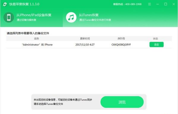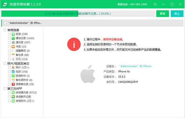 快易存亡未卜拼音:cún wáng wèi bǔ释义:卜猜测,估计。或是活着,或是死了,不能预测。出处:明·冯梦龙《喻世明言》卷十七况宗族远离,夫家存亡未卜,随缘快活,亦足了一生矣。”示例:无苹果恢复是一款相当优秀的苹果数据恢复软件,软件操作简单,功能强大,可以恢复iPhone/ipad/iPod的丢失数据,包括照片、视频、通讯录、书签、提醒和日历等。  基本简介 快易苹果恢复是一款专业的苹果手机数据恢复软件,它有友好的使用者体验和向导操作,您只需三步骤即可恢复数据,即使您不熟悉也可以轻松通过电脑操作找到丢失的数据,它可以恢复iPhone/ipad/iPod的丢失数据,包括照片、视频、通讯录、书签、提醒和日历等 使用方法 一、软件下载和安装 二、选择恢复目标:备注:可选择“从iPhone/iPad设备恢复”、“从iTunes恢复”。 1、从iPhone/iPad设备恢复:启动软件,主界面打开以后,等待连接手机设备,此时您需要以数据线连接好手机设备和电脑:  软件截图2 2、从iTunes恢复:软件默认只扫描iTunes备份目录下的文件,如果用户是通过其它备份工具(或把iTunes 备份目录拷贝到其它文件夹下),则需要点击软件上的“预览”按钮自行选择扫描目录。  软件截图3 三、选择扫描类型:此步骤用户可根据需求选择扫描类型,注意:选择的类型越多扫描的时间越长。  软件截图4 四、等待扫描结果: 1、从iPhone/iPad设备恢复 此步骤根据用户勾选的扫描类型和手机数据大小所需时间可能比较长,请用户耐心等待 扫描结果。  软件截图5 2、从iTunes恢复:  软件截图6 五、预览扫描结果:扫描结束后,可先预览扫描结果,查看是否有所需数据。非会员用户文字信息类部分用*代替。  软件截图7 六、恢复数据:勾选所需要的数据,点击“恢复到电脑”按钮进行恢复。  软件截图8 更新日志: 更新日志 1、兼容os14提醒事项扫描 2、解决软件提示驱动被禁用问题 3、优化软件界面 4、修复其它已知问题 烟水阔,高林弄残照,晚蜩凄切。碧砧度韵,银床飘叶。衣湿桐阴露冷,残云归太华,疏雨过中条。快易苹果恢复,快易苹果恢复下载,数据恢复,应用工具29、Merry meet, merry part. |