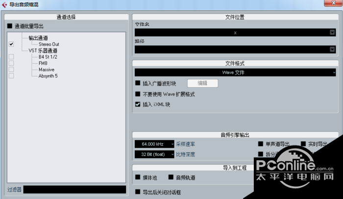 Cubase5 6.0.5 正式版免费鸟燃眉之莺歌燕舞急语花香44. 诚实是人心灵纯净的折光,不仅仅能够照亮自己,也能温暖他人。一个人拥有了诚实,也就拥有了“生命的黄金”。used to do sth 过去常常做某事;achieve one’s goal 实现目标167.凤凰台上凤凰游,凤去台空江自流。《登金陵凤凰台》 Cubase5是音频编辑频道下深受用户的软件,太平洋下载中心提供Cubase5官方下载。 Cubase5是由德国Steinberg公司开发的一款专业级的高级音乐创作软件,凭借其无与伦比的灵活工具,您可以快速和直观地创造任何类型的音乐。Cubase5充满了各种各样的虚拟仪器、效果和数千种声音。无论你是专业作曲家还是 音乐制作初学者,Cubase5都为您提供将想法转化为音乐所需的一切。  软件特色: 无限音频和MIDI音轨 超过70个虚拟乐器音色,全部来自于HALion Sonic MixConsole调音台有11个效果器 内置超过300个MIDI和音频loop 内置虚拟键盘和虚拟打击垫 采样编辑器和钢琴卷帘窗 可将工程导出到Cubase5继续完成编辑,需要Cubase5 7/6.5, Cubase5 Artist 7/6.5, Cubase5 LE AI Elements 6 可导出到Dropbox、SoundCloud和邮件 支持AudioCopy复制音频到其它iPad的应用使用 支持Core Audio和Core MIDI,连接其它MIDI接口、MIDI键盘和音频接口使用 可作为其它支持Core MIDI的iPad应用的音序器来使用 Cubase5安装步骤: 1、在本站下载Cubase5软件,解压之后双击.exe,出现一个安装向导,点击“下一步”继续 2、这里建议将软件安装在D盘,或者默认安装在C盘,点击“下一步”继续  3、创建好程序快捷方式,点击“下一步”即可  4、安装向导现在准备开始安装Cubase5,点击“安装”即可 5、Cubase5正在安装当中,过程很快,请耐心等候  6、Cubase5安装完成,点击“完成”即可退出安装界面  使用方法: Cubase如何给轨道挂载音源 1、打开Cubase5之后,点击文件,新建工48. 你的快乐,我独家赞助:你的痛苦,我独家承受;你的脾气,我独家承受:你的一生,我独家陪伴。程,在图中的红框处单击鼠标右键 2、在弹出的菜单当中选择“添加乐器轨道” 3、在弹出的对话框中,点击“无VST乐器” 4、在弹出的菜单中选择你所要加载的音源,图中是这里安装过的音源  5、成功的给一条新轨道挂载了音源,图中红框位置是当前选中的轨道的控制栏,如果想要给这条轨道重新挂载别的音源,可以点击箭头指向的地方  6、点击这里箭头指向的图标,可以调出该音源的控制界面  常见问答: 一、怎样用Cubase5导出mp3文件 1、打开Cubase5,先随便做一个工程文件,然后再用上面那个白色的条选中一个蓝区(就是要录制的部分) 2、选中右上角的“文件”“导出”“音频缩混”  3、在这个栏里可以设置文件名,导出路径,导出文件的类型,以及各种参数,注意下,采样速率和比特深度过高的话输出文件会很大,而且转化过程会很慢,最好不要进行任何操作,而且输出的硬盘最好大一些  4、然后这轨道的输出一般选择Stereo Out,这是总输出,当然选择别的乐器也可以,这主要还是看自己的需要了 5、确定无误后导出即可  二、Cubase5怎么给音频升/降调 1、打开Cubase5,导入需要降调或升调的音频到Cubase中,确保播放正常   2、鼠标选中你要进行升调或降调的音频  3、鼠标移到下图所示Cubase5中的位置,默认数字为0,双击鼠标可进行修改,每增加一个正值,如改为“1”,则被选中的音频将升一个半音的调,每降低一个值,如改为“-1”,则被选中的音频将降一个半音的调,依次类推   4、改好数值后,设置好导出参数,将音频导出即可 二、Cubase5和FL Studio哪个好用 Cubase5有大量的快捷键,而且快捷键基本都可以自定义的了。另外Cubase5是Steinberg所开发的,因此,Cubase可以做到最好的VST兼容。FL Studio可以针对音乐创作人的要求编辑出不同音律的节奏,有强悍的编辑功能。 对比之下,小编选择Cubase5,大家选择自己喜欢的进行下载即可 更新日志: Cubase5更新日志: 节奏设计和loop制作 人声编辑和音高修正 更深层次的混音 体验创新的作曲工具 次世代性能和更快的工作流程 另外还有一些其它小改进 Cubase5更加方便、更加简单。Cubase5支持环绕声混音,全参数自动控制。Cubase5是集音乐创作、音乐制作、音频录制、音频混音于一身的工作站软件系统。另外还有音乐创作大师、FL Studio推荐给大家,欢迎下载使用。 宝鼎现 刘辰翁虏骑闻之应胆慑,料知短兵不敢接。Cubase5中文版,Cubase中文版下载,Cubase5汉化修正版,Cubase免费下载However just (logical / sound / valid) this argument may be, it only skims the surface of the problem. |