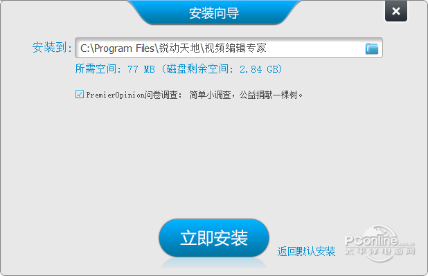 锐动天地视频编辑专家 10.0 官方免费版免费久旱九牛一毛逢甘露滔滔不绝不是不想恋爱,而是不想随便的恋爱。最好的承诺,不是爱你一万年,而是根本不需要承诺。不是不想说,只是不知道该怎么说,能和谁说。有时候,发现自己一夜之间长大,却看不到自己的未来。42. Coming from a family of English teachers, she always had a particular interest in English.刘基352.金玉其外,败絮其中。《卖柑者言》 视频编辑专家是一款让您对视频进行个性的编辑的视频编辑软件。这款视频编辑专家(视频编辑软件)能够帮助您随意把一个视频文件分割成任意大小和数量的视频文件,从视频文件中提取出您喜欢的模块并制作成视频文件等多种实用功能。太平洋下载中心为您提供视频编辑软件下载。  视频编辑软件下载截图1 功能介绍: 1.编辑与转换:可以转换MPEG 1/2/4, AVI, ASF, SWF, DivX, Xvid, RM, RMVB, FLV, SWF, MOV, 3GP, WMV, PMP, VOB, MP3, MP2, AU, AAC, AC3, M4A, WAV, WMA, OGG, FLAC等各种音视频格式;而且支持音量调节,时间截取,视频裁剪,添加水印和字幕等功能。 2.视频分割:把一个视频文件分割成任意大小和数量的视频文件。 3.视频文件截取:从视频文件中提取出您感兴趣的部分,制作成视频文件。 4.视频合并:把多个不同或相同的音视频格式文件合并成一个音视频文件。 5.配音配乐:给视频添加背景音乐以及配音。 6.字幕制作:给视频添加字幕。 7.视频截图:从视频中截取精彩画面。本站提供锐动天地下载! 安装步骤: 1、解压下载好的安装包,可以直接单击【立即安装】。  视频编辑软件下载截图2 2、也可以点击【自定义安装】,选择软件的安装路径后单击【立即安装】。  视频编辑软件下载截图3 3、软件安装完毕。  软件截图4 使用方法: 一、去除视频中的音乐或杂音 1、打开【视频工具】中的【编辑与转换】功能,选择输出的视频格式,选择适当的输出格式,下一步。  软件截图5 2、添加文件。下一步。  软件截图6 3、将【禁用音频】设置为【是】,然后点击下一步等待转换完成。  软件截图7 4、打开看看,是不是没声音了。 二、MP3中的音乐音量大小不一样,将它们调节成一样的 1、点击【添加】按钮,加入你要改变音量的音频文件。 在下方的目标音量中输入您想要的音量,也可以不做调整,点击【开始调节】即可。  软件截图8 2、出现调节进度页面,等待完成即可。本站提供锐动天地免费版下载!  软件截图9
