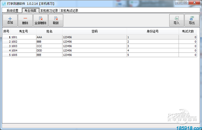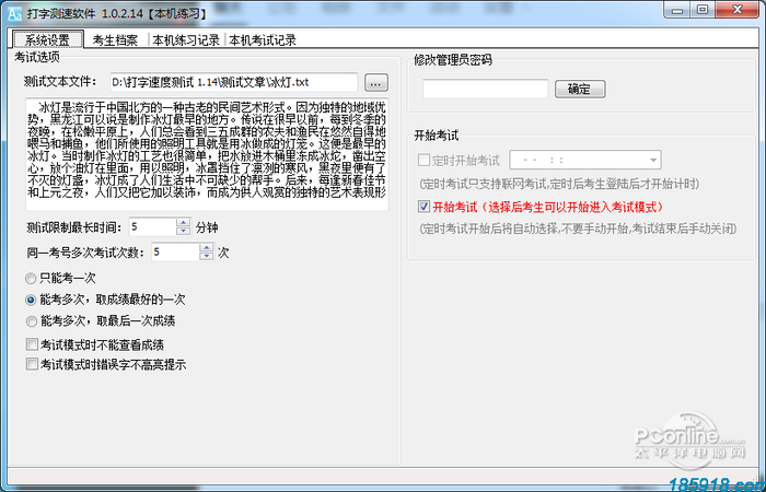 中英文打字测试软件 1.14 正式版免费悬风卷残云崖举不胜举峭壁26. 宽容如水。宽容,即原谅他人的过错,不耿耿于怀,不锱铢必较,和和气气,做个大方的人。宽容如水般的温柔,在遇到矛盾时,往往比过激的报复更有效。它似一泓清泉,款款抹去彼此一时的敌视,使人冷静清醒。如果你有空闲时间我的家乡做客,我会非常乐意做你的导游。259.鸡声茅店月,人迹板桥霜。温庭筠《商山早行》 中英文打字测试软件是一款专业的打字测试学习软件。使用简单,界面清析,拥有完善的功能。可以使用各种输入法,使用本软件能迅速的提高你的打字能力。在政府、企事业等选拔人才时可用来测试相关人员的打字效率。 不同于以往的手动记录后录入Excel表格再处理。本系统有前端与后端,前端为打字测试,后端为系统选项和练习,练习与考试的成绩记录。可以准确的根据考号、姓名、考试所用时间、正确字数、错误字数等记录在案,系统自带导出成绩功能。考试可设置考试的次数,是否考试时显示成绩,是否考试时高亮错误的字。考试的时候禁止 WIN键、ctrl+ESC、ALT+ESC、ALT+F4、Alt+Tab,禁止鼠标移动到窗口外面。 软件分为两种模式:本地测试与联网测试,本地测试完全免费,联网需要注册。 服务端可以装在广域网或局域网,也可以装在内部的电脑上,然后通过花生壳等工具进行连接,在线人数可达到数千人同时测试。 当以管理员登陆的时候为管理模式,可以管理学员的档案与记录,学员则会进入 练习模式或考试模式。 本软件有单机版和联网版两种模式,单机版免费,无任何限制。联网版如有需要可加QQ:83239832 管理员: admin 密码:123456 学员测试: 1001 密码:123456 快捷键: 全角/半角: Shift + 空格键 中英标点:  杯蛇鬼车拼音:bēi shé guǐ chē释义:指因疑虑、惊惧导致幻觉中产生的怪物。杯蛇,杯弓蛇影”之省;鬼车,传说中的九头鸟。出处:《水浒传》第九五回况我兵惊恐,凡杯蛇鬼车,风兵草甲,无往非撼志之物。”示例:无; Ctrl + . 切换输入法:Ctrl + 空格键   软件截图2  软件截图3  软件截图4  软件截图5  软件截图6 应是蹑飞鸾,月下时时整佩环。月又渐低霜又下,更阑,折得梅花独自看。春宵苦短日高起,从此君王不早朝。中英文打字测试软件,考试系统4.Where there is a will,there is a way. 有志者事竟成。 |