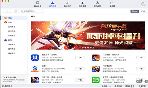 爱思助手Mac版具有独创的云智能一键刷机和一键越狱功能,简单易用的备份恢复,数据迁移等高级工具,免帐号,免越狱高速安装海量的应用和游戏,铃声壁纸彩铃等海量个性化资源任你使用。