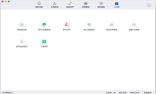 为iOS用户设计了一系列实用功能,比如备份数据,制作铃声,转换视频,删除顽固图标,等等。