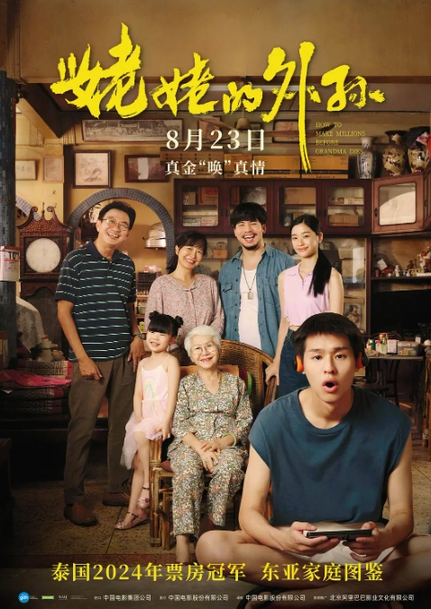◎译 名 姥姥的外孙/金孙爆富攻略(台)/全职乖孙(港)/中国家庭/粥味奇缘/How to Make Millions Before Grandma Dies/The Chinese Family ◎片 名 ◎年 代 2024 ◎产 地 泰国 ◎类 别 剧情 ◎语 言 泰语/潮州话 ◎上映日期 2024-04-04(泰国)/2024-08-23(中国大陆) ◎IMDb链接 https://www.imdb.com/title/tt31392609/ ◎豆瓣评分 9.0/10 from 129057 users ◎豆瓣链接 https://douban.com/subject/36328210/ ◎片 长 127分钟 ◎导 演 帕特·波尼蒂帕特 Pat Boonnitipat ◎编 剧 帕特·波尼蒂帕特 Pat Boonnitipat / 汤萨蓬·逖提拿坎 Thodsapon Thiptinnakorn ◎主 演 普提蓬·阿萨拉塔纳功 Billkin Putthipong Assaratanakul 乌萨·萨梅坎姆 Usha Seamkhum 莎琳拉·托马斯 Sarinrat Thomas 三亚·库纳康 Sanya Kunakorn 邦沙敦·宗威拉克 Pongsatorn Jongwilak 彤达婉·奔提维此弓 Tontawan Tantivejakul 当蓬·欧阿披叻 Duangporn Opirat 西玛瓦理·塔利吉 Himawari Tajiri