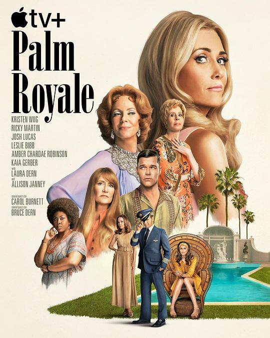 ◎标 题 皇家棕榈 ◎译 名 美国派夫人 / 美国派夫妇 / Mr. and Mrs. American Pie / Mrs. American Pie ◎片 名 Palm Royale ◎年 代 2024 ◎产 地 美国 ◎类 别 剧情 ◎语 言 英语 ◎IMDb链接 https://www.imdb.com/title/tt8888540/ ◎豆瓣链接 https://movie.douban.com/subject/35917843/ ◎导 演 泰特·泰勒 Tate Taylor 爱比·西尔维亚 Abe Sylvia 克莱尔·斯坎伦 Claire Scanlon 斯蒂芬妮·莱恩 Stephanie Laing ◎编 剧 爱比·西尔维亚 Abe Sylvia 凯利·哈钦森 Kelly Hutchinson 莎莉·霍尔曼 Sheri Holman 朱丽叶·麦克丹尼尔 Juliet McDaniel ◎演 员 克里斯汀·韦格 Kristen Wiig 瑞奇·马丁 Ricky Martin 乔什·卢卡斯 Josh Lucas 莱丝莉·比伯 Leslie Bibb 安珀·查尔达·罗宾森 Amber Chardae Robinson 明迪·科恩 Mindy Cohn 茱莉亚·达菲 Julia Duffy 凯雅·基伯 Kaia Gerber 劳拉·邓恩 Laura Dern 艾莉森·珍妮 Allison Janney 布鲁斯·邓恩 Bruce Dern 卡罗尔·博内特 Carol Burnett 多米尼克·伯吉斯 Dominic Burgess 约旦·布里奇斯 Jordan Bridges 里克·考斯奈特 Rick Cosnett 克劳迪娅·费里 Claudia Ferri 杰森·卡内拉 Jason Canela 贝利纳·洛根 Bellina Logan Jason Patrick Mills Wesley Mann 罗伯托·桑切斯 Roberto 'Sanz' Sanchez 克里珊·伊斯特伍德 Chrisanne Eastwood Crosby Fitzgerald 尼克·德拉戈 Nick Drago