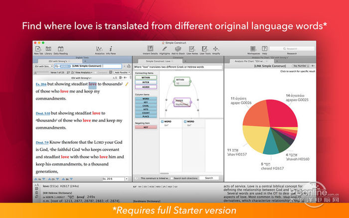 | 介绍 | Accordance 12 Mac版 12.1.5 正式版免费三人行风雨同舟炊烟四起必有我师25. 生活的海洋并不像碧波涟漪的西子湖,随着时间的流动,它时而平静如镜,时而浪花飞溅,时而巨浪冲天……人们在经受大风大浪的考验之后,往往会变得更加坚强。8. Any student who is interested is welcome to participate.(2016.全国)209.千淘万漉虽辛苦,吹尽狂沙始到金。《浪淘沙》 Go deep into Bible study with Accordance® 12 Lite. Accordance equips you with cutting-edge original language tools, a dynamic interlinear, drag-and-drop graphical searching, and a host of other features designed to take your Bible study to the next level. Experience a clean and simple interface that can be customized to complement your Bible study objectives. Upon registration, you will receive the following Bibles and reference works for studying the Bible: English Bibles English Standard Version (ESV) with Strong’s Numbers King James Version (KJV) with Strong’s Numbers King James Version Apocryph17. 希望是附丽于存在的,有存在,便有希望,有希望,便是光明。a World English Bible (WEB) Douay-Rheims Bible Reference Works Matthew Henry Condensed Commentary Easton’s Bible Dictionary Bible Names Dictionary Strong’s Greek Dictionary Strong’s Hebrew Dictionary Gospel Harmony Parallel Old Testament Parallel Old Testament in New Testament Parallel Biblical Studies BiblicalTraining.org Collection Classic Bible Passages Dr. J’s Bible Study Methods Nave’s Topical Bible Outlines of the Bible Parables and Miracles Daily Readings Chronological Readings Devotional Readings International Language Bibles Portuguese Bible: João Ferreira De Almeida Atualizada Italian: Conferenza Episcopale Italiana 2008 Italian: Conferenza Episcopale Italiana 1974 German Elberfelder 1905 French: Louis Segond Bible German Lutherbibel 1912 Spanish 1909 Reina Valera with Strong\'s numbers Romanian: Versiunea Dumitru Cornilescu 2014 Samplers Accordance PhotoGuide Sampler Accordance Atlas Sampler Accordance Timeline Sampler From within Accordance 12 Lite, you can purchase our Starter Collection and gain access to more features for research such as Stacks & Paper as well as a larger library of Bibles and reference works. ![]() Accordance 12 Mac版 截图1 Accordance 12的新功能 New Feature Entering or pasting an accord:// link into the Research Toolbar field will process it in-app Changes Generated search and location URLs now use the https://accordance.bible/link scheme Changed the Keyboard Input Language keyboard shortcuts to avoid conflicts, and added them as available shortcuts to customize Enter Reading Mode shortcut can now be customized Quick Entry exact matches will better match the current field The underline style of a paper item is no longer propagated to its list marker Turning off Interlinear will restore the prior format of paragraphs, if necessary Research inquiries for texts now use the default scope specified in the Search Tabs preferences Instant Details is now supported for more external tool links Added Get Verses support for Evernote Minor adjustment to the menu order of \'Easy Install\' \'Check for Updates\' and others Minor rename of certain Paper elements for consistency Updated Greek words Improved Tool Page number format support to allow for a trailing ‘a’ or ‘b’ at the end of page numbers, such as in T-BAV-EF. Improved Tool hyperlinking to nonbiblical corpora to not just take the first two texts of that corpus, but walk through them until the verse is found. Updated help files ![]() Accordance 12 Mac版 截图2 ![]() 截图3 ![]() 截图4 ![]() 截图5 夜游宫 吴文英衣裳已施行看尽,针线犹存未忍开。Accordance,12,Accordance,12,mac版,Accordance,12,for,mac,参考In consumer - driven industries, innovation, product differentiation, and creativity are crucial to lasting success. |