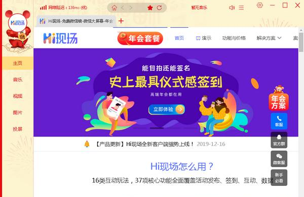 HI现场 3.0.0.0 官方版免费数美如冠玉膘肥体壮不胜数33. 这世间所有的相遇都是难得的缘分,而无论在困境还是逆境里的陪伴,都是我所能想象的最美的故事,那么此生,苟富贵,勿相妒吧。I\'d appreciate it if … 如果……我将不胜感激;at your earliest convenience [书信用语] 尽早;尽快刘禹锡208.沉舟侧畔千帆过,病树前头万木春。《酬乐天扬州初逢席上见赠》 HI现场又叫HI弹幕,是一款专门用于活跃年会气氛的软件,HI现场可以应用于晚会、年会、校园活动、婚礼、电影院中,通过HI现场可以增加弹幕互动功能,通过小程序或者手机APP就能轻松的完成抽奖、互动等功能,是一个非常好玩,又特别实用的暖场软件。  使用场景 企业年会 边看节目边发弹幕,独特的年会互动 校园活动 从此晚会、比赛、课程不在沉闷 婚礼婚庆 新人感受嘉宾送来的真挚祝福 电影院 享受现场B站电影院 软件特色 Hi弹幕功能让消息飞越大屏幕,员工扫码发送消息,实时表达自己的喜悦之情,创意年会必不可少的互动新模式。 最适合在校学生使用的大屏幕沟通方式,让无聊的校园活动变得生动起来,台上台下齐分享,留言吐槽展示最真实的想法。 新人通过展示婚纱照传递自己的幸福,嘉宾通过发送弹幕表达自己的祝福之情,让所有人感受不一样的婚礼庆典。 在大荧幕上实时表达自己的观影感受,和电影爱好者交流心得体会,体验全新的观影方式,让交流更加便捷。 使用方法 一、下载安装HI现场,注册登录后使用。  软件截图2 二、通过导入歌曲、图片、视频对播放端进行设置。52. 我爱三样东西,太阳、月亮、和你,太阳留给白天,月亮留给夜晚,而你留给我自己。  软件截图3 三、在投屏处设置要投影的屏幕。  软件截图4 常见问题 1、弹幕的样式和速度可以修改吗 登录客户端之后在互动功能设置里找到弹幕,在这里可以设置弹幕的样式,播放速度,以及字号大小等。 2、用户怎么参与发弹幕 通过微信扫描二维码就可以发送弹幕参与互动; 只要一条好玩的弹幕就可以让你的活动现场瞬间嗨起来! 除了弹幕之外, 还可以在后台设置抽奖,摇红包,摇一摇,投票,霸屏等个性化功能! 波面铜花冷不收,玉人垂钓理纤钩,月明池阁夜来秋。春风举国裁宫锦,半作障泥半作帆。HI现场,HI现场下载,媒体管理,影音工具54、Home is where the heart is. |