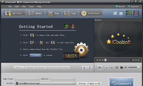 iCoolsoft M2TS Converter(M2TS视频转换工具) 5.0.6 官方版共享一呼丰富多彩百兵马多(千军万马)应30. 缺陷有时可以成就另一种美丽。一只漏水的木桶是不完美的,每次打水,都会因为它的缺陷而洒下一半的水。可是不经意间,那些洒下的水却成了小花们的生命之泉。就是这些漏下的水浇灌出人们脚下的一片芬芳。不错,缺陷并非永远都是不好的,也许不经意间就造就了另一种美丽。我们对自己解决问题的能力有足够的信心。325.臣心一片磁针石,不指南方不肯休。《扬子江》 iCoolsoft M2TS Converter是一款功能强大的M2TS视频转换工具,可以将M2TS视频转换为所有流行的视频和音频格式,拥有强大的编辑功能,需要的朋友快来下载吧。  软件特色 支持所有 M2TS 视频 转换蓝光电影 完美支持蓝光光盘上的 M2TS 视频文件,因此您可以将蓝光电影转换为所有流行的高清视频、一般视频和音频文件,以供您多种用途。 转换 AVCHD 摄像机视频 大多数摄像机以 AVCHD 格式录制高清视频,并生成 .m2ts 文件,例如索尼、佳能、松下、JVC、日立等品牌的大多数型号。此 iCoolsoft M2TS 转换器使您能够轻松编辑 AVCHD 视频并将其转换为您想要的任何格式。 综合输出格式 大多数高清视频 您可以将 M2TS 转换为高清视频,如 HD AVI、HD WMV、HD RM、HD MPEG、HD MOV、HD MP4、H.264/MPEG-4 AVC、MKV 等。 流行的视频和音频格式 将 M2TS 转换为通用 AVI、WMV、ASF、RM、RMVB、MOV、MPG、MPEG、MP4、3GP、FLV、SWF、DivX、Xvid、MKV、VOB、DAT 等。将 M2TS 音频提取为 MP3 、WMA、WAV、M4A、AAC、AC3、FLAC、OGG 等音频文件。 兼容各种设备的 视频 该工具可以直接输出针对 iPod、iPhone、Apple TV、PSP、PS3、Wii、Xbox、Zune、爱可视、iRiver、黑莓、手机和其他便携式播放器优化的视频。新兼容ipad 2、iPhone 4、iPhone 4S; 图像文件 您可以轻松预览源视频,一键抓拍,将您的视频画面保存为JPEG、GIF 或BMP 格式的图像文件。 强大的编辑功能 修剪视频长度 设置开始时间和结束时间以指定要转换的任何片段,从而剪切不需要的部分并获得您喜欢的片段。 合并多个剪辑 选择多个文件并将它们合并为一个文件,您可以根据需要合并源视频或修剪的视频。 裁剪屏幕区域 您可以根据需要设置播放区域去除黑边或保留某些部分,设置缩放模式和 4:3 或 16:9 比例。 调整效果 调整视频亮度、对比度、饱和度,并应用去隔行。“全部应用”功能可轻松将调整应用于文件列表中的所有视频。 水印 添加文本或图像水印视频,调整其字体,大小,位置,透明度和其它设置。所有的调整都可以实时预览,您可以比较原始视频和输出视频以查看效果。 灵活的设置 设置详细的视频和音频参数 调整所有编码设置,如视频编码器、分辨率、帧速率、视频比特率、音频编码器、采样率、通道、音频比特率等。 可选择的音轨和字幕 如果源文件有多个音轨或字幕,您可以选择任何一个作为输出视频。 其他设置 iCoolsoft M2TS Converter 允许您设置最大 CPU 使用率以同时运行其他应用程序,并设置 After-Done Action 使其在转换完成后自动关闭您的 PC,两种文件查看模式:列表和缩略图,支持全屏模式。 24. 那些以前说着永不分离的人,早已经散落在天涯了。