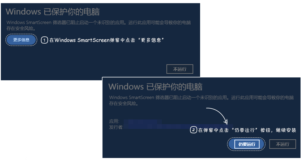 2.安装/使用时遇到Windows SmartScreen拦阻该怎么办?