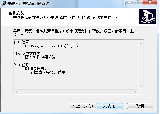 5、确认上述阅卷扫描识别系统安装信息,点击安装