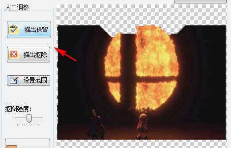3、软件自动完成抠图,在人工调整功能栏自由设置抠图范围