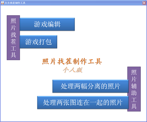 照片找茬工具分为游戏工具与照片辅助工具两部分, 游戏工具包括编辑工具和打包工具。