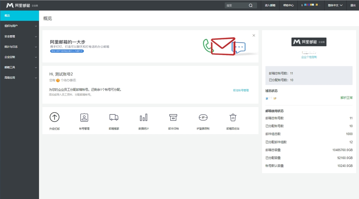单组织支持绑定多个域名,根据组织管理需求,可实现不同域名创建帐号或统一设定域别名