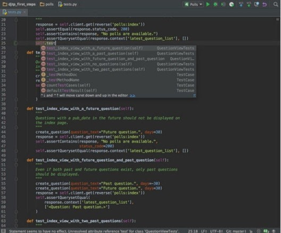 ??立即可用的神奇的工具套装:一个整合的调试器,图形化测试运行程序,集成使用Git,SVN,Mercurial;以及内置的数据库工具支持。