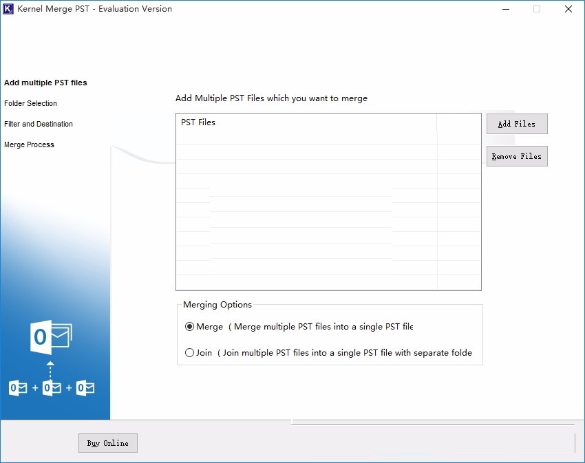 该工具提供了两个保存选项,以合并或加入多个Outlook PST文件。