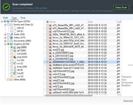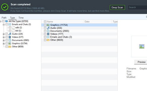 4、预览文件,注意:如果在第一次扫描模式中找不到所需的文件或无法打开文件,则在获得第一次扫描结果后,可以使用深度扫描模式进行进一步恢复。