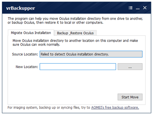 VR游戏只能存储在Oculus和Oculus的安装目录中,旧版本只能安装在系统分区上。因此,新下载的游戏通常会遇到可能没有足够的安装空间的问题。因此,将Oculus安装目录及其所有游戏移动到具有vrBackupper的另一个非C:驱动器是一个智能的选择。