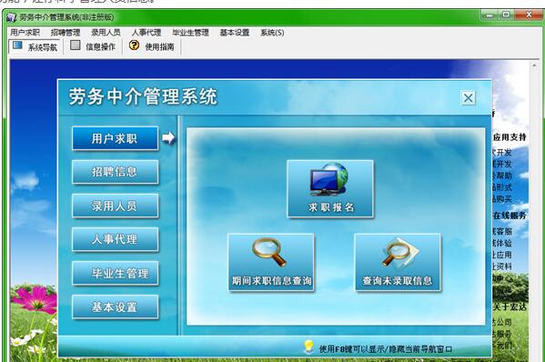 宏达劳务中介管理系统中文版是款专门为了从事中介行业的工作人员,进行研发设计的劳务中介管理软件,宏达劳务中介管理系统中文版拥有简洁的功能,其软件主要内置了招聘信息,人事代理,毕业生管理等各种功能,让你科学管理人员信息。