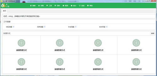 7、工具:保险提醒、保养提醒、年审提醒、库存预警、报售单、收支管理、科目管理、盘点开单、盘点单管理、工具管理、手机查看报表。