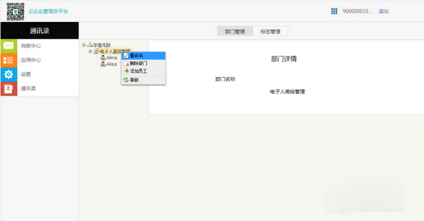 然后进入通讯录【右键】点击高级管理添加企业员工注册好的电子人号即可