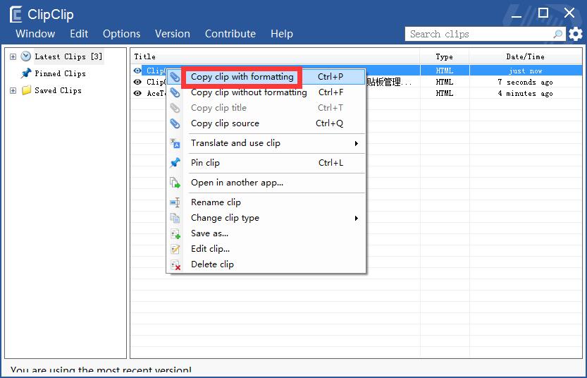 ClipClip最新版是操作很简单的剪贴板复制工具,ClipClip最新版为用户提供了更加简便和多功能的文件复制功能,为用户提供无限的存储容量,包含了编辑、保存和分享等功能。ClipClip官方版将会彻底改变用户复制粘贴的方式,支持复制多个文本、图像或文件到您的剪贴板,然后你可以通过浏览器过搜索这些最新剪辑或将其转换为保存的剪辑。