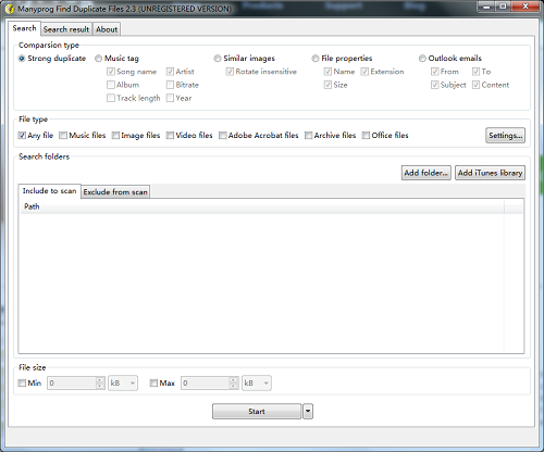 Manyprog Find Duplicate Files官方版是一款相当实用的查找并删除重复文件工具。Manyprog Find Duplicate