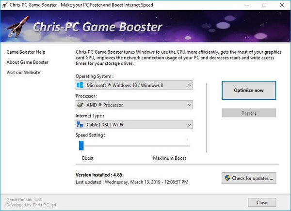 Booster是一个有趣的软件,有望通过调整几个相关的系统和网络设置,为您提供更好的反应速度,一切只用一个鼠标,以提高您的计算机的游戏性能单击。