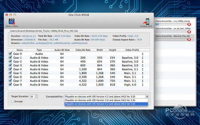 | 介绍 | One Click M3U8 Mac版 2.3.1收费婉沉鱼落雁转悦耳鸟语花香41. 把孔子所不屑的“三思而行”的踌躇让给老年人吧!年轻不就是有莽撞往前去的勇气吗?年轻就是手里握着大把岁月的筹码那么,在命运的赌局里作乾坤一掷的时候,虽不一定赢,气势上总该能壮阔吧?be regarded as 被认为 / 视作;a means of ……的方式107.明修栈道,暗渡陈仓。 Creating HTTP Live Streaming video is just a click away! Stream your video from an ordinary HTTP server to a mobile device28. 简约不是少,而是没有多余,足够也不是多,而是刚好你在。. Watch how to use video here : bit.ly/1s7MMyA (or click One Click M3U8 Support) ● Automatically detects the Apple recommended encoding specifications for adaptive bit-rate HTTP Live Streaming from the source video. ● Encoding, Segmenting & Indexing all in one tool. ● Availability of conversion queue for batch processing. ● Ability to create only desired streams for a variant playlist. ● Ability to change bit-rate, dimension and video profile of any Stream. ● Ability to specify the duration of segments as well as the HLS Version. ● Availability of Audio only Stream for low bandwidth connections. ● Availability of Encryption Option. ● No need of mediafilesegmenter or variantplaylistcreator. ● Supports most widely used video containers such as .mp4, .m4v, .mkv, .avi, etc. Steps: 1. Open the video file by clicking \'Open Video\'. 2. Specify the desired gears, bit-rate and other options. 3. Click \'Create HLS\' and choose a folder to keep the files. The task will be added to the conversion queue and HTTP Live Streaming files will be ready in minutes! Automatic Gears: One Click M3U8 automatically detects Apple Recommended Encoding Settings for HTTP Streaming from the input video. The user has total control over in specifying desired gears, duration of the segments, HLS Version, bit-rate, dimension, encryption and video profile. Encryption: The created video content can now be protected by industry standard AES-128 Encryption just by selecting the option. The URL prefix option comes in handy if the user decides to move the keys to a HTTPS Server. One Stop Solution: No other Tools needed. The application encodes, creates all the segments, index files and the data for index files. Encoding, Segmenting & Indexing all in one tool. And it\'s blazing fast! Questions/Suggestions - Please use the contact form at www.nacentApps.com/contact.html. ![]() One Click M3U8 Mac版 截图1 One Click M3U8的新功能 2.3.1 Minor Fix. 2.3 Updated Libraries and Logic for HLS Video creation. Now ByteRange HLS 4.0 Video can be created for streaming to devices with iOS 5.1 and above. ![]() One Click M3U8 Mac版 截图2 ![]() 截图3 ![]() 截图4 花 犯 周密010杜甫:佳人One,Click,M3U8,One,Click,M3U8,mac版,One,Click,M3U8,for,mac,软件开发工具70、You cannot have your cake and eat it. |