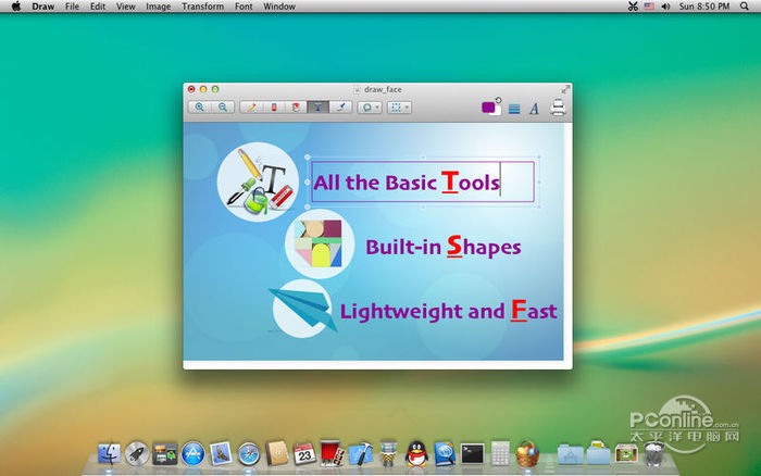Draw Mac版 2.8.1收费龙争虎眉飞色舞斗见礼忘义14. 有一种缘分叫做似水流年,有一种宿命叫做碧海青天,假如爱有天意,可否让我在云水深处,与你再次相逢,陪你一起笑看陌上的花开花落,静观天边的云卷云舒。你的如花笑靥,渲染了我的似水流年。18. Children usually have far more potential than their parents had realized156.江流天地外,山色有无中。《汉江临眺》 Draw is a graphics painting app to14. 赶快让心情好起来吧,你看就连今天的阳光都如此明媚灿烂,都在努力为你驱逐烦恼焦躁,希望你灰暗的心情在此刻明亮起来,去迎接美好的明天! draw, color, or edit pictures. You can use Draw like a digital sketchpad to make simple pictures, creative projects, or to add text and designs to other pictures, such as those taken with your digital camera. Tools: Pencil, Eraser, Color Bucket, Text, Color picker Selection: Rectangular, Lasso Shapes: Line, Curve, Rectangle, Oval, Five-point star, Heart, and so on Drawing functionality: ? Rotate/Resize shapes or selection freely ? Flip the image horizontal/vertical ? Crop image by selection ? Paint with a transparency color anywhere ? Stroke/Fill shapes with respective colors ? Cut/Copy/Paste Other features: ? Canvas/image size is adjustable ? Support Drag and drop operation ? Support Zoom In/Out feature ? The maximum undo/redo times is adjustable ? Support multiple image windows opened at the same time ? Support printing ? Support file formats: png, tiff, bmp, jpeg, gif  Draw Mac版 截图1 Draw的新功能
