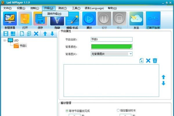 LED MPlayer(LED屏幕控制软件) 2.0.4 官方版免费眉顶天立地飞色一视同仁舞3. 美,是有系统的,慎重谨敬的、有脉络有缘故的,丑却草率邋遢,自暴自弃。虽然有时美伪装得像后者,但其实不然,美的大自在来自“从心所欲不逾矩”的素养,而非邋遢。如今,老师和家长都对学生上网现象极为担心。17.物以类聚,人以群分。 LED MPlayer是一款LED屏幕控制软件,支持同异步双模控制功能,还可以控制屏幕的显示内容,显示特效,显示时间等,LED MPlayer是一款很不错的LED屏幕控制工具。  功能介绍 LED MPlayer为用户提供了同异步双模功能。 屏参设置,能够支持对LED显示屏的显示器名称、控制器型号、硬件设置等参数进行全面的设置。 固件升级,支持用户一键升级固件。 强大的LED显示屏测试功能,支持灰度测试、渐变测试、网格测试等多种测试功能。 亮度调节,支持对LED显示进行亮度调整。 定时亮度设置,用户可以设置定时亮度。 节目属性设置,哟门户可以对界面名称、背景颜色、背景图片、背景音乐等进行设置。 软件特色 播放管理,提供了等待节目播放完成时长设置、指定播放时长等管理操作。 支持显示与隐藏两种模式,用户快速显示或隐藏。 支持视频缩放功能,用户了可以对视频进行缩放操作。 多语言支持,LED MPlayer支持简体中文在内的多种语言。 LED MPlayer为用户提供了抓屏模式。 视频播放效果支持速度优先、画质优先两种播放效果。 支持发送节目背景图片。 支持软件启动最小化、启动隐藏播放窗等操作。 添加区域支持单行文本窗、多行文本窗、文件窗、时钟窗。 使用方法 1、双击桌面上的L8. 我要开个小卖部,把零食都送给幼儿园的小朋友。ED MPlayer运行软件,进入如下的操作界面,用户可以对LED的界面属性进行设置,用户可以设置节目名称、背景颜色、背景图片、背景音乐等参数。  软件截图2 2、设置,在设置一栏中提供了屏参设置、亮度调节、定时亮度设置、抓屏模式等操作设置功能。  软件截图3 3、控制,在控制一栏中用户可以进行播放、暂停、停止等操作。 4、升级,在升级功能中提供了【固件升级】,用户可以一键升级固件。  软件截图4 5、测试,在测试一栏下提供了灰度测试、渐变测试、网格测试三种LED显示屏测试功能。  软件截图5 6、工具,在工具一栏提供了Word、Excel、画图、记事本等常用的工具。  软件截图6 7、点击次菜单栏上的语言(language)选项,支持简体中文等多种语言。  软件截图7 8、在功能栏上提供了新建屏幕、打开、保存、隐藏、编辑/收起、播放、发送等操作。  软件截图8