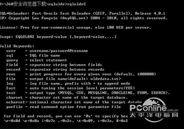 oracle数据导出工具sqluldr2 正式版免费玉兔东畅通无阻北雁南飞升48. 生活是广阔的大千世界,无奇不有。阳光下的罪恶,毕竟只是生活中的糟粕,而友善真诚,则是人的天性。太阳深处,核聚变在不断进行,太阳下方,人的心灵在时刻净化。49.社会进步的体现 a symbol of society progress340.知无不言,言无不尽。 宋?苏洵 《远虑》 sqluldr2是一款Oracle数据快速导出工具,包含32、64位程序,sqluldr2在大数据量导出方面速度超快,能导出亿级数据为excel文件,另外它的导入速度也是非常快速,功能是将数据以TXT/CSV等格式导出,有需要的赶快下载吧!  基本简介 下载完sqluldr解压后,文件夹内容如下: sqluldr2.exe 用于32位windows平台; sqluldr2_linux32_10204.bin 适用于linux32位操作系统; sqluldr2_linux64_10204.bin 适用于linux64位操作系统; sqluldr264.exe 用于64位windows平台。 使用方法 1、首先将sqluldr2.exe复制到执行目录下,即可开始使用 2、查看help 帮助  软件截图2 3、执行数据导出命令 3.1、常规导出 sqluldr2 test/test@127.0.1.1/orcl query="select * from temp_001" head=yes file=d:\\tmp001.csv 说明:head=yes 表示输出表头  软件截图3 3.2、使用sql参数 sqluldr2 test/test@127.0.1.1/orcl sql=test_sql.sql head=yes file=d:\\tmp001.csv test_sql的内容为: select * from temp_001  软件截图4 3.3、使用log参数 当集成sqluldr2在脚本中时,就希望屏蔽上不输出这些信息,但又希望这些信息能保留,这时可以用“LOG”选项来指定日志文件名。 sqluldr2 test/test@127.0.1.1/orcl sql=test_sql.sql head=yes file=d:\\tmp001.csv log=+d:\\tmp001.log  软件截图5 3.4、使用 table 参数 当使用 table 参数时,在目录下会生成对应的ctl控制文件,如下语句会生成temp_001_sqlldr.ctl文件。 sqluldr2 test/test@127.0.1.1/orcl query="select * from temp_001" table=temp_001 head=yes file=d:\\tmp001.csv  软件截图6 生成的控制文件temp_001_sqlldr.ctl的内容如下:  软件截图7 4、主要参数说明 Field 分隔符 指定字段分隔符,默认为逗号 record 分隔符 指定记录分隔符,默认为回车换行,Windows下的换行 quote 引号符 指定非数字字段前后的引号符 例如现在要改变默认的字段分隔符,用“#”来分隔记录,导出的命令如下所示: sqluldr2 test/test sql=tmp.sql field=# 在指定分隔符时,可以用字符的ASCII代码(0xXX,大写的XX为16进制的ASCII码值)来指定一9. 我的梦想是当绘画老师。因为我太喜欢绘画和做手工啦!个字符,常用的字符的ASCII代码如下: 回车=0x0d,换行=0x0a,TAB键=0x09,|=0x7c,&=0x26,双引号=0x22,单引号=0x27 在选择分隔符时,一定不能选择会在字段值中出现的字符 青门引 张先嗟哉吾党二三子,安得至老不更归!oracle数据导出工具sqluldr2,oracle数据导出工具sqluldr2下载,数据库,编程开发13.All that glitters is not gold. 闪光的未必都是金子。 |